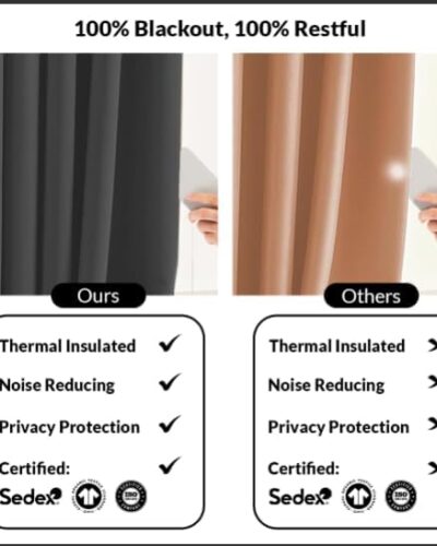 •  Thermal Insulated & Noise Reducing: Keep your room cool in summer and warm in winter with our thermal-insulated blackout curtains. The dense fabric acts as a sound barrier, significantly reducing outside noise and creating a peaceful indoor environment. Save on energy bills while enjoying privacy and comfort all year round